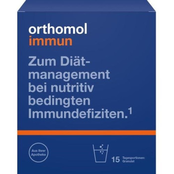 Orthomol Immun ist ein diätetisches Lebensmittel für besondere medizinische Zwecke (bilanzierte Diät) mit Süßungsmitteln. Orthomol Immun® zur diätetischen Behandlung von nutritiv bedingten Immundefiziten (z. B. bei rezidivierenden Atemwegsinfekten).