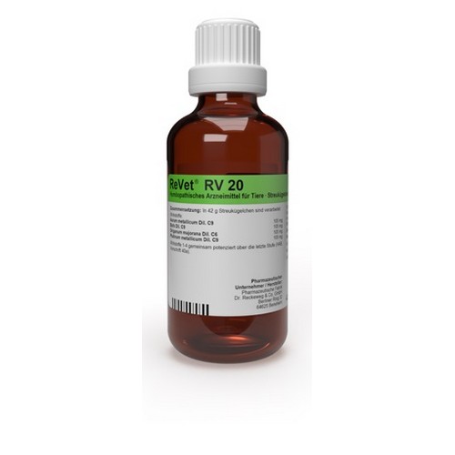 ReVet® RV 20 - oral - (Globuli) wird in etwas Wasser aufgelöst eingegeben. Die Globuli dürfen auch aufgelöst mit etwas Nahrung oder Tränke verabreicht werden. Die Häufigkeit und Dauer der Anwendung richtet sich in erster Linie nach den Grundsätzen der Homöopathie, wonach bei beginnender Besserung seltener dosiert wird und nach Erreichen des Normalzustandes zunächst keine weitere Anwendung erforderlich ist.